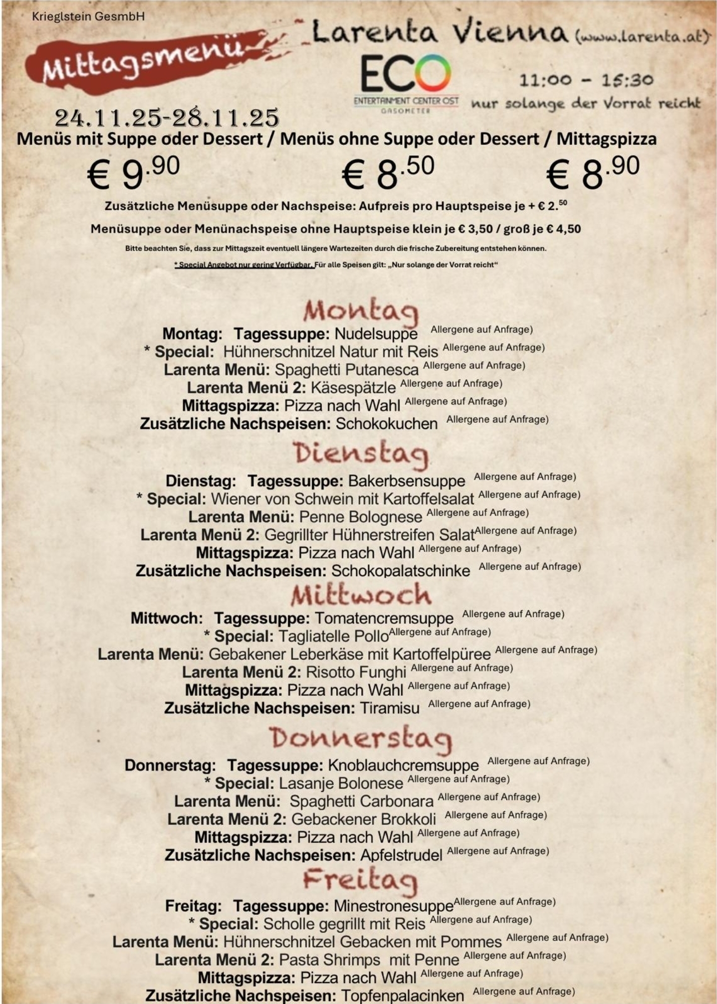 Wir bitten um rechtzeitige Tisch Reservierung. Euer Larenta Vienna Team