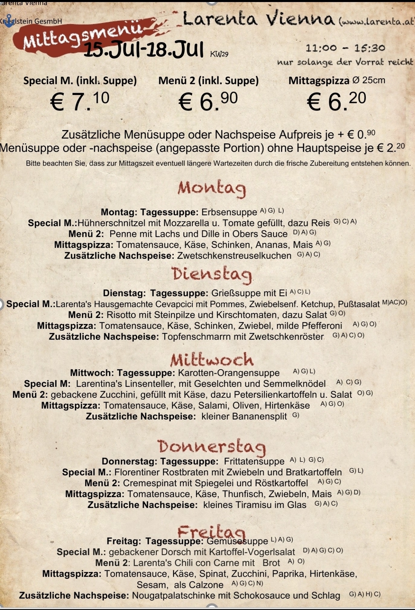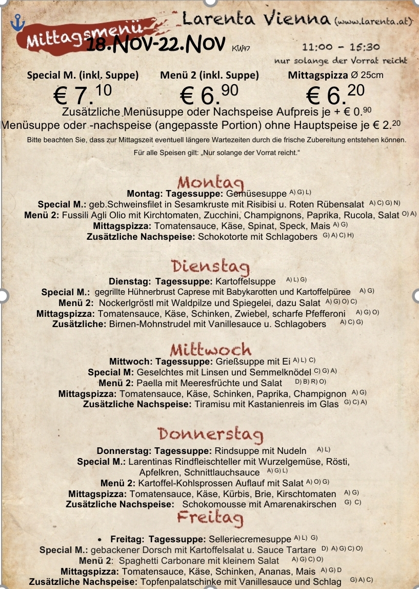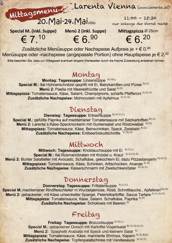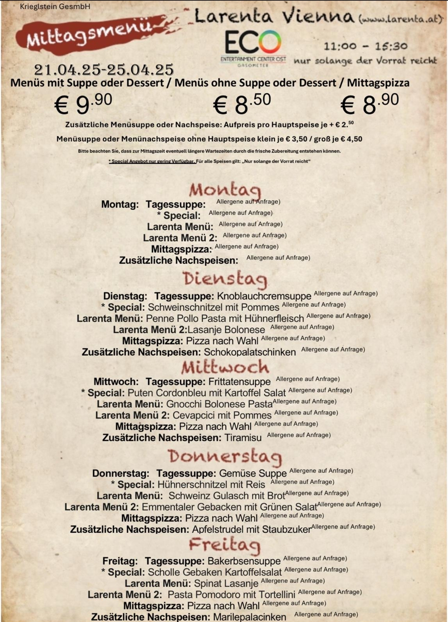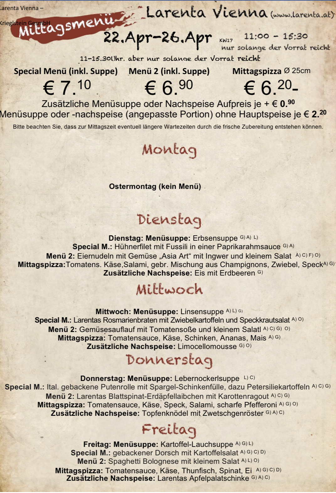 Wir bitten um rechtzeitige Tisch Reservierung. Euer Larenta Vienna Team