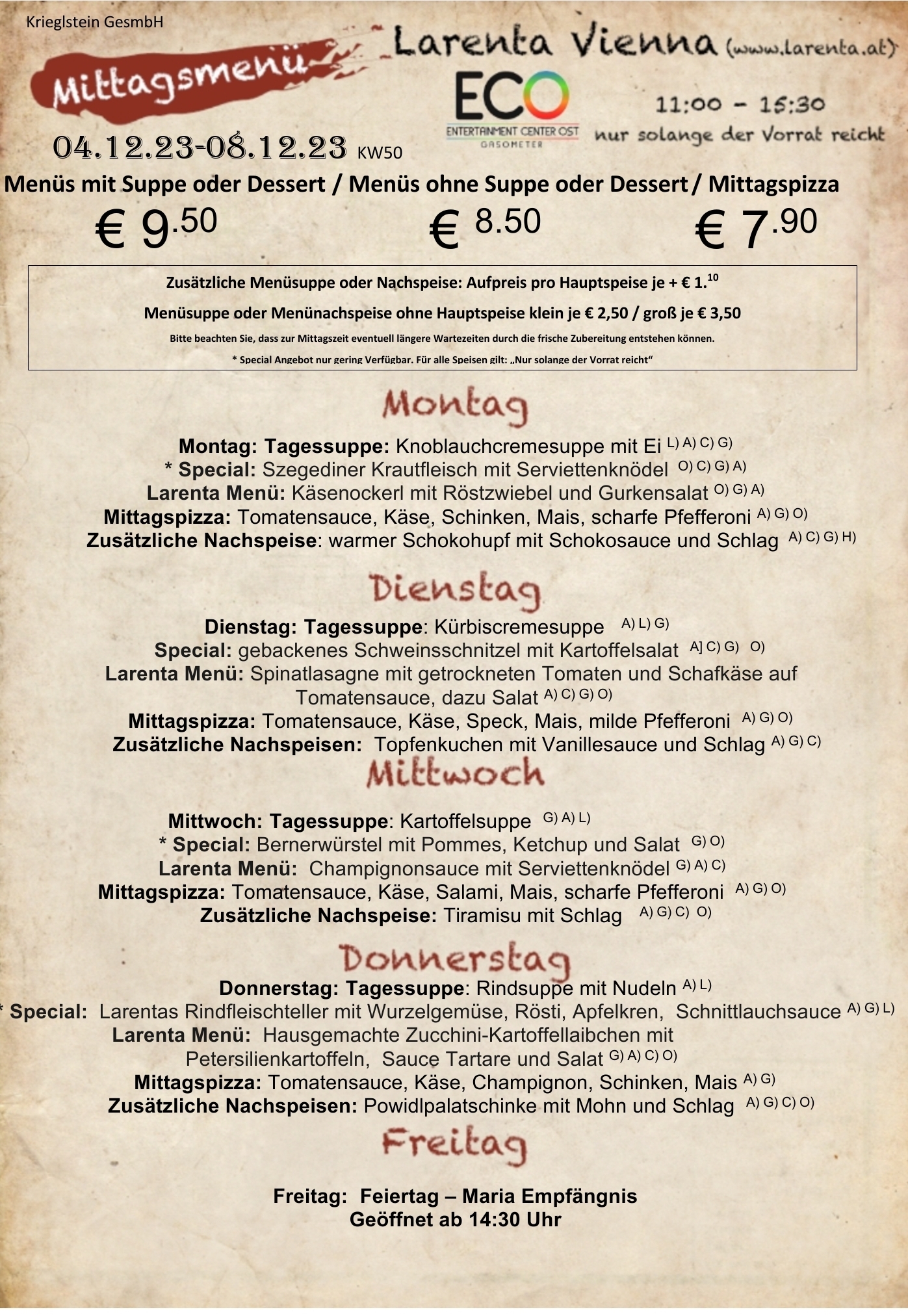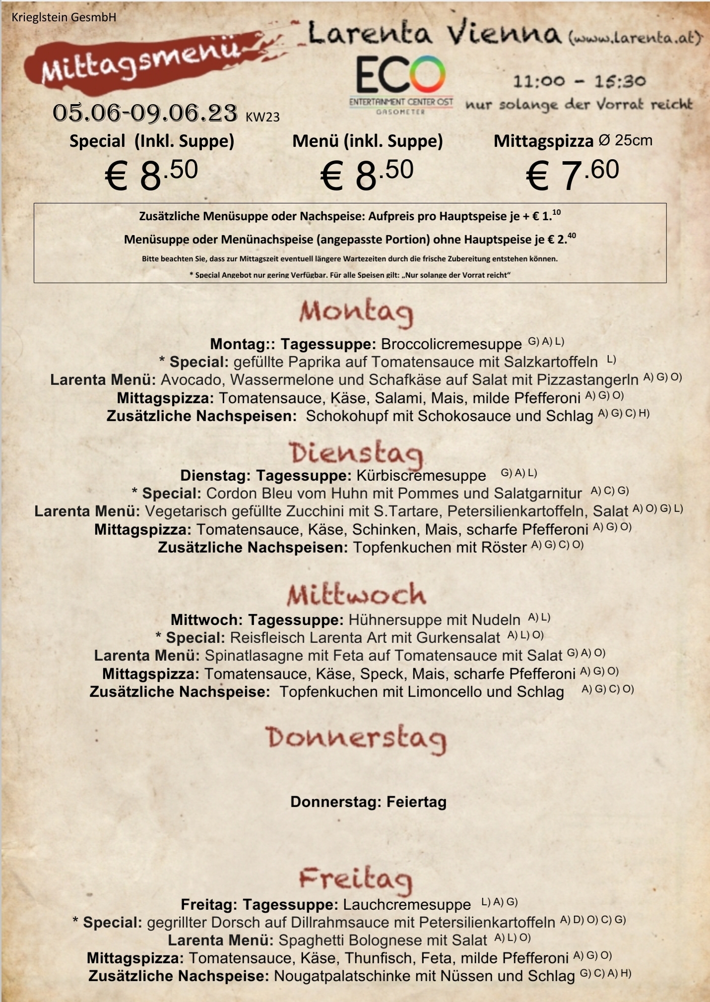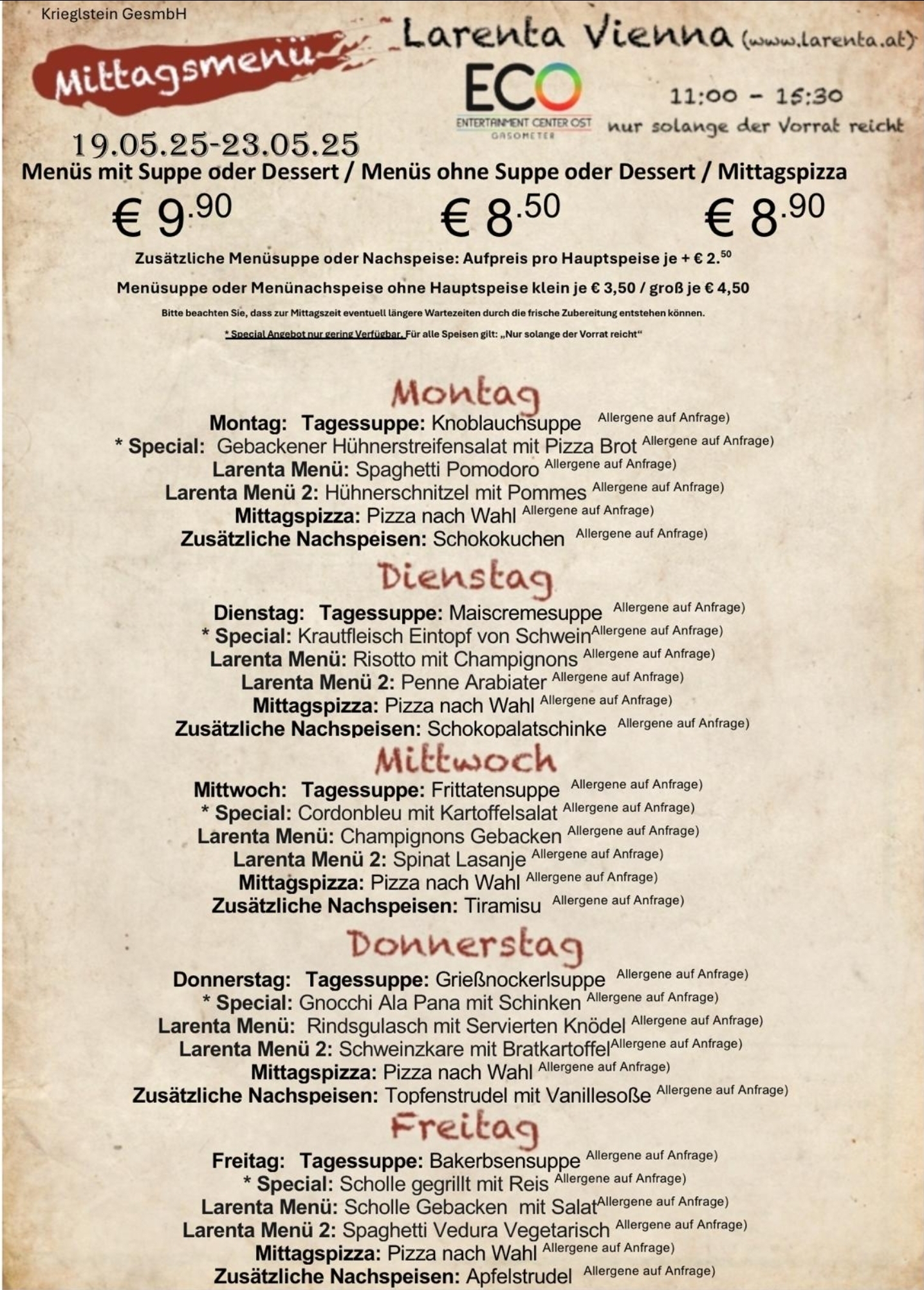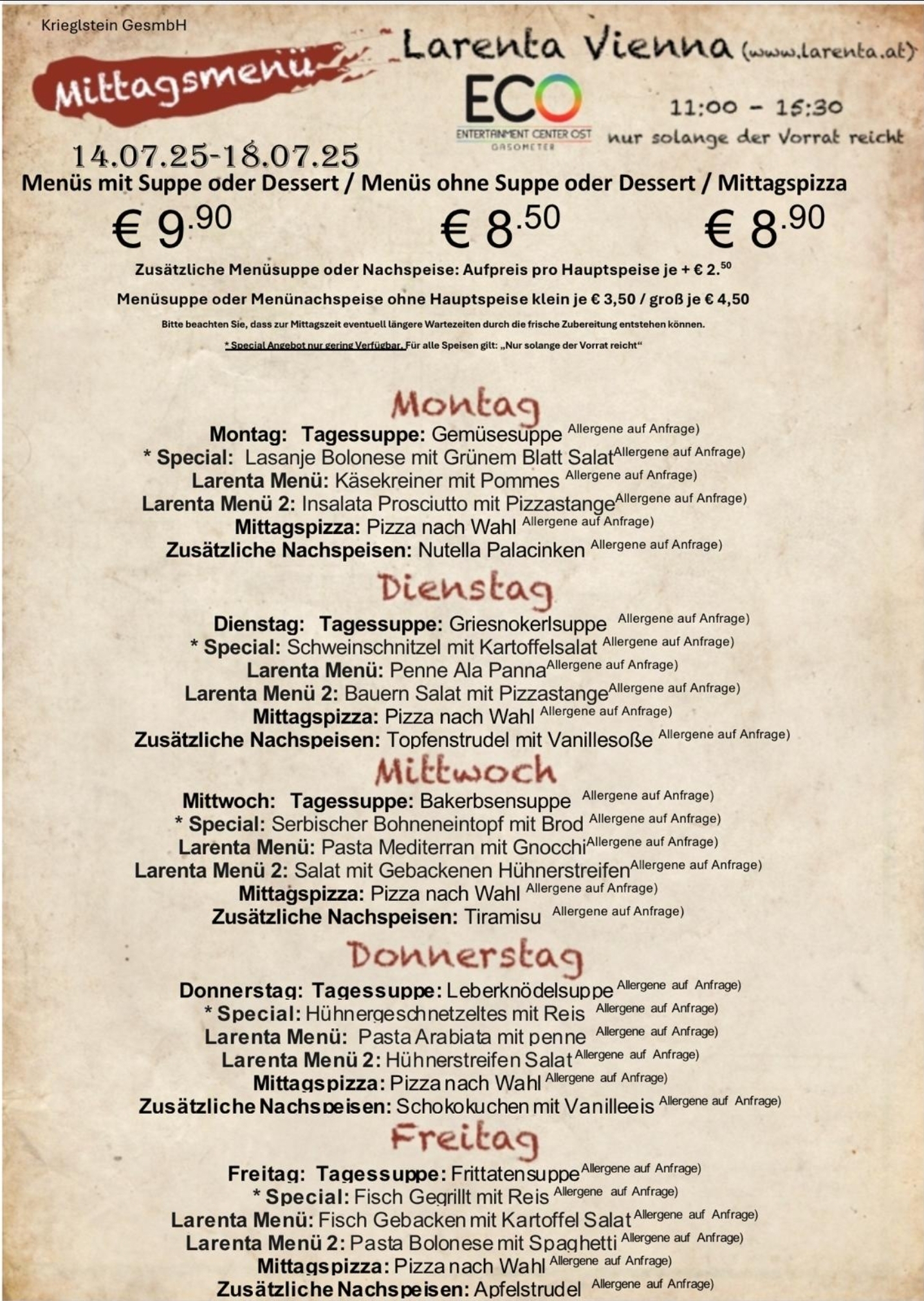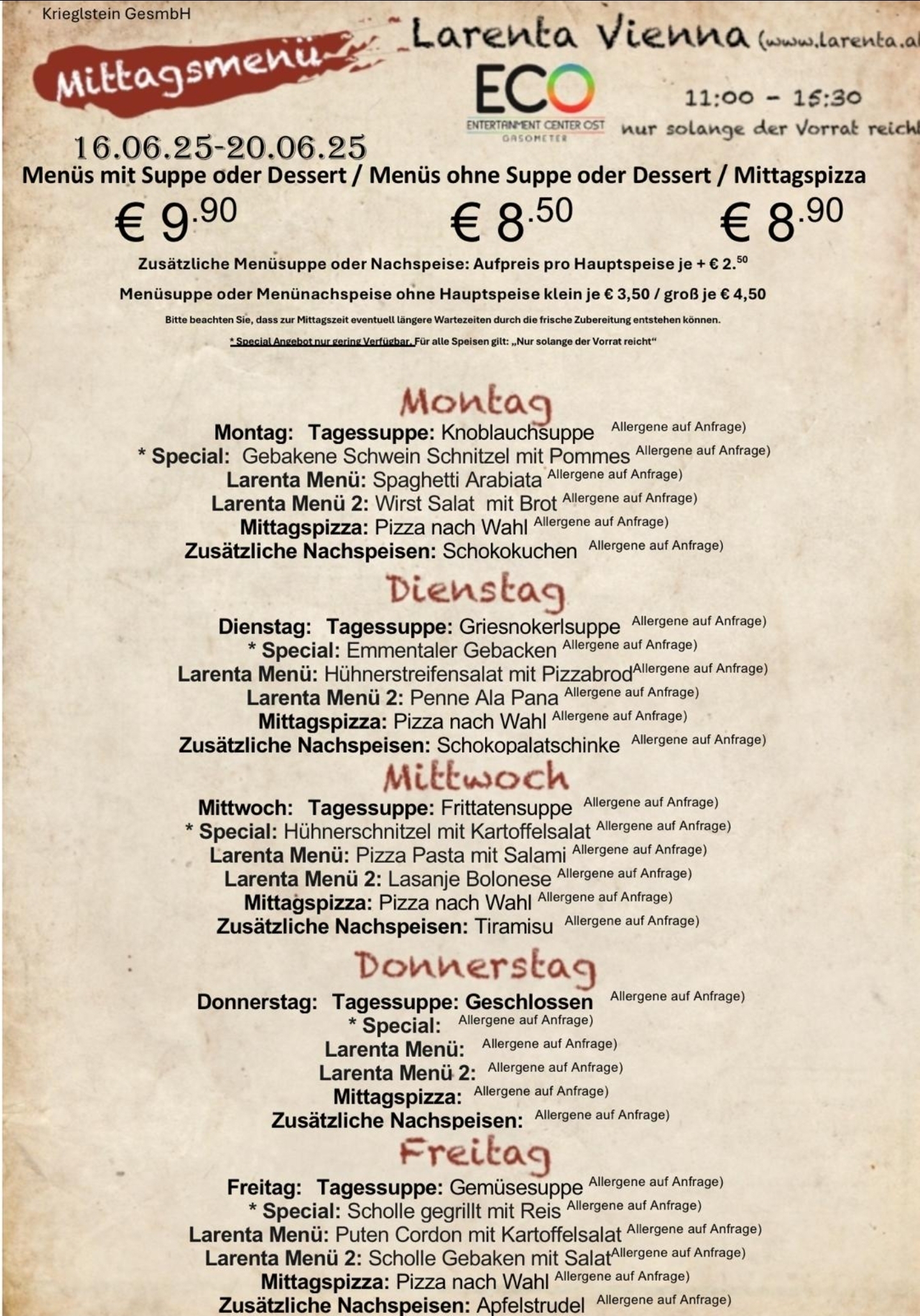 Wir bitten um rechtzeitige Tisch Reservierung. Euer Larenta Vienna Team